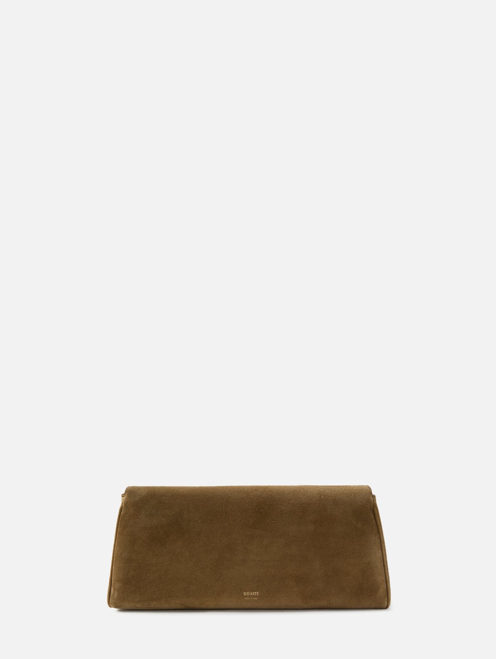 The Audrey Clutch is timeless with a flap-front design that features a beautifully curved suede base and an Art Deco-inspired closure.