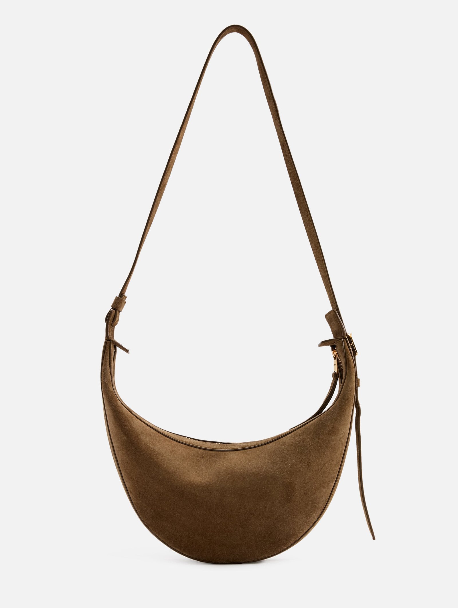 The graceful curve of this crescent-shaped hobo bag fits perfectly under your arm. Made in Italy from calfskin. the soft and slouchy silhouette has an open interior that’s secured by a zip top closure.