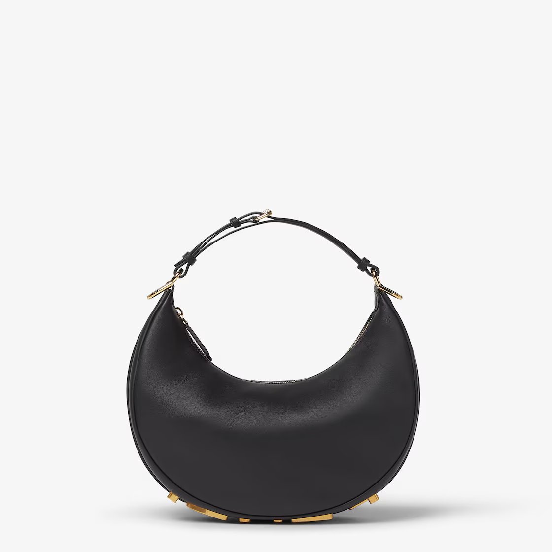 -Key features of the hardware details: The shoulder strap is attached to the top of the bag with a gold metal buckle, creating a striking contrast with the black leather; the gold metal studs on the bottom of the bag not only protect the base of the bag but also add a touch of stylish sophistication.