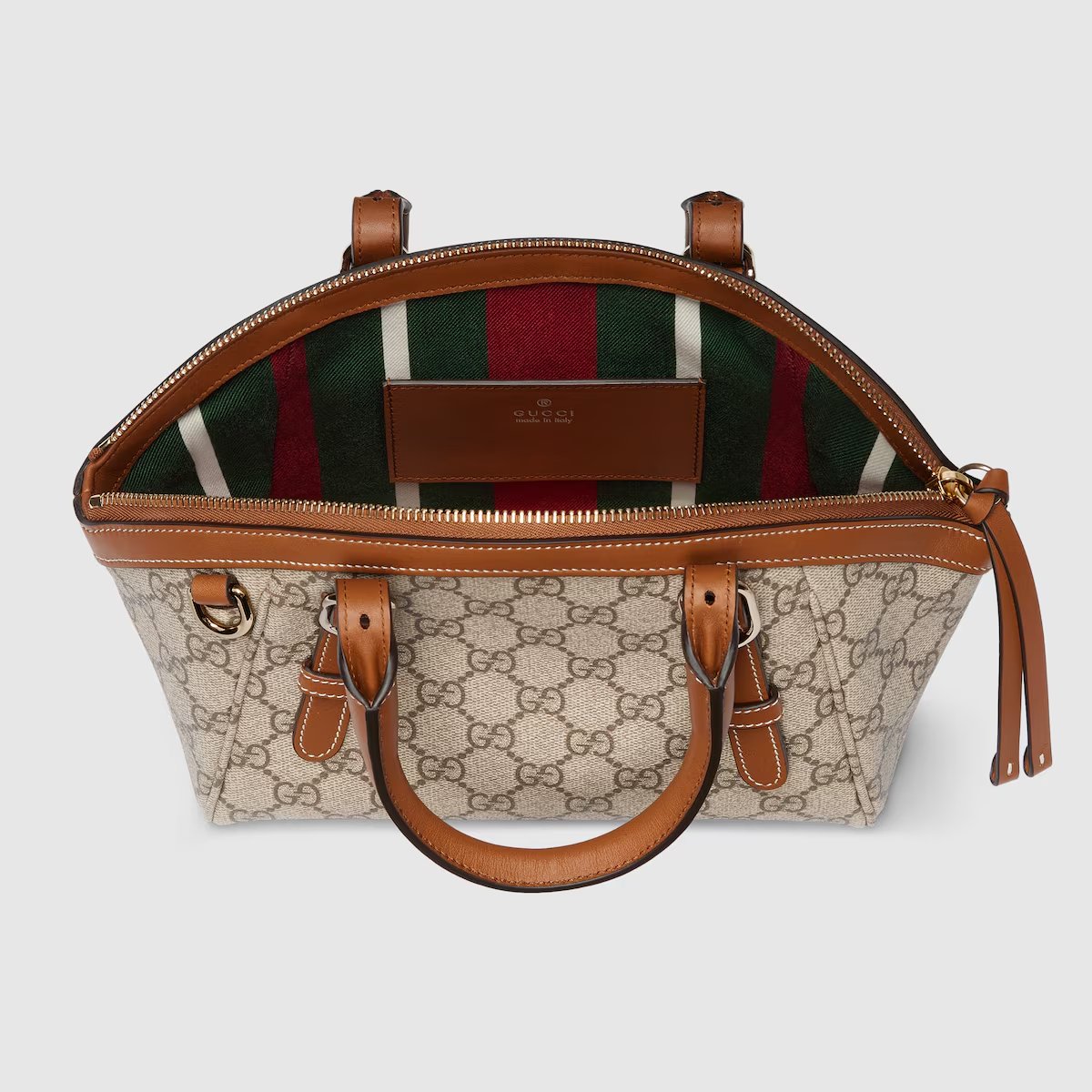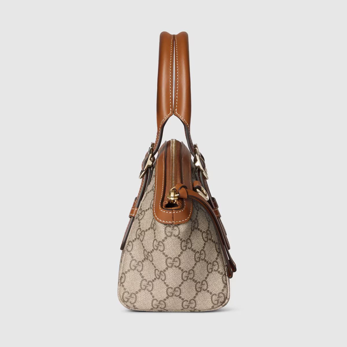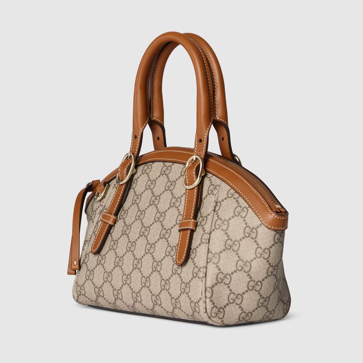 -Classic logo: The bag is made of Gucci’s iconic GG canvas, with a light beige background and a dark brown GG pattern, showing the brand’s classic retro texture.