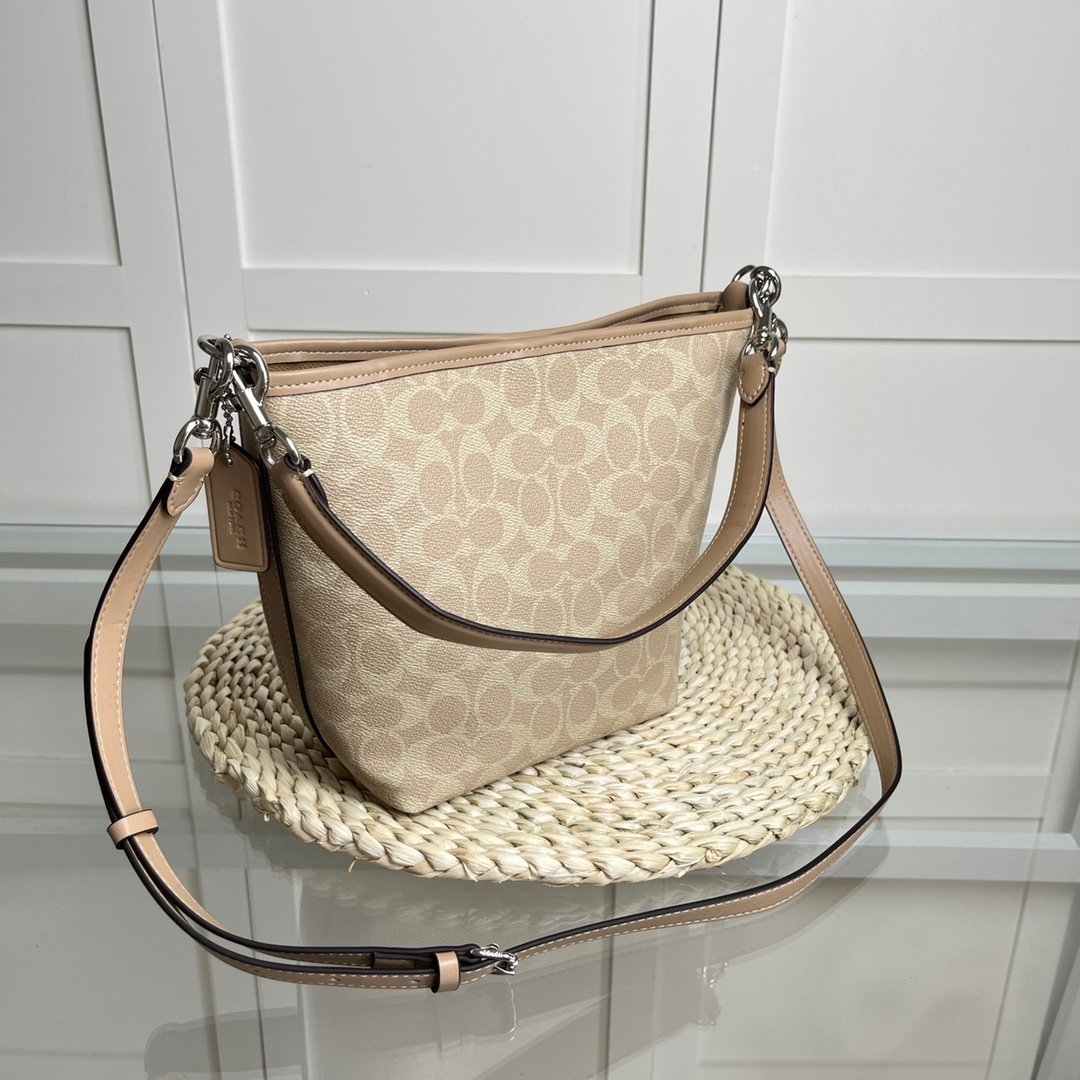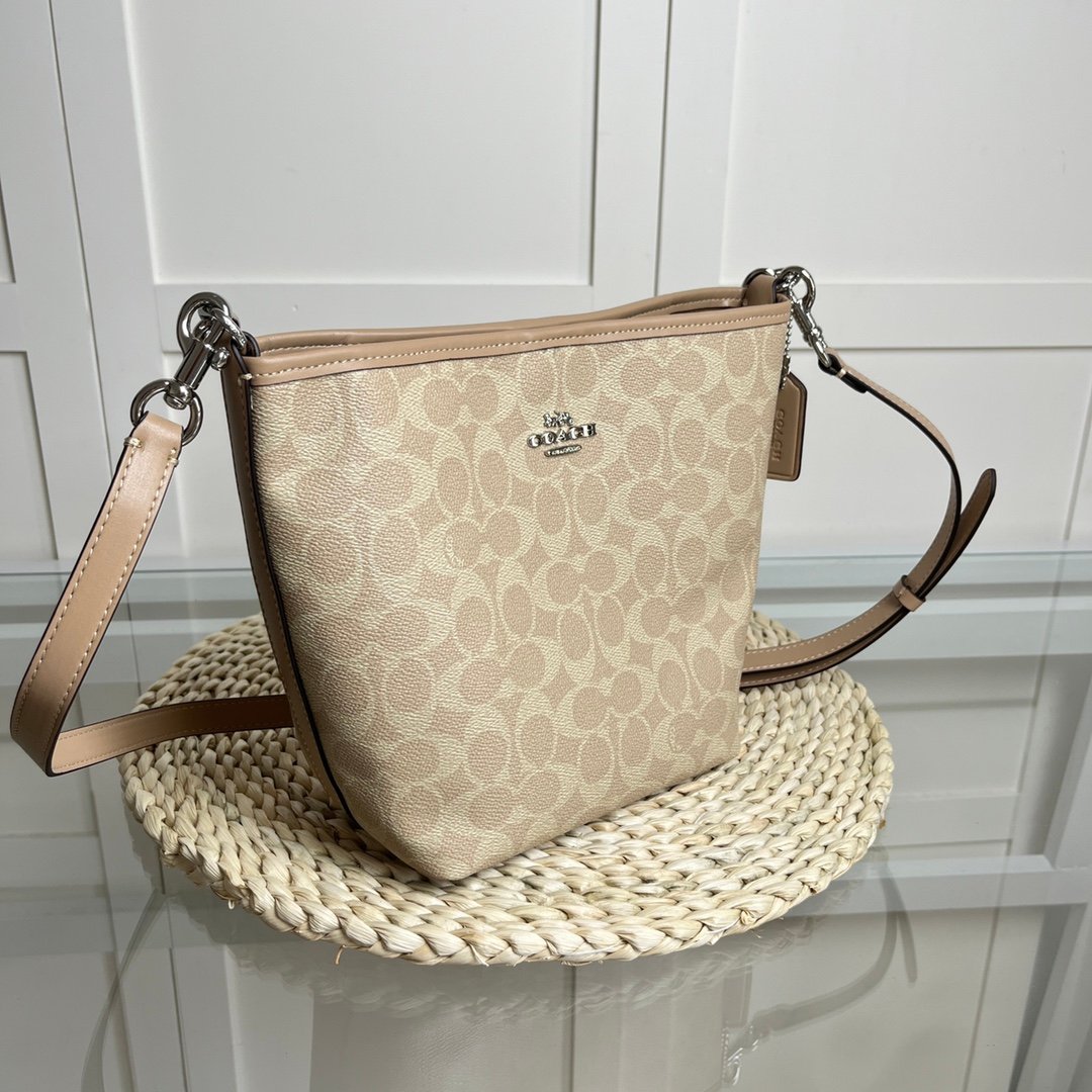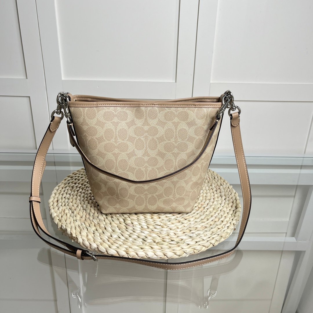 -Details and adaptability: The bag is printed with the COACH metal brand logo and paired with the brand’s exclusive leather tag. The combination of light brown monogram and bucket bag shape makes it suitable for a variety of daily scenarios such as casual shopping and commuting. It is an everyday item that combines practicality and fashion.