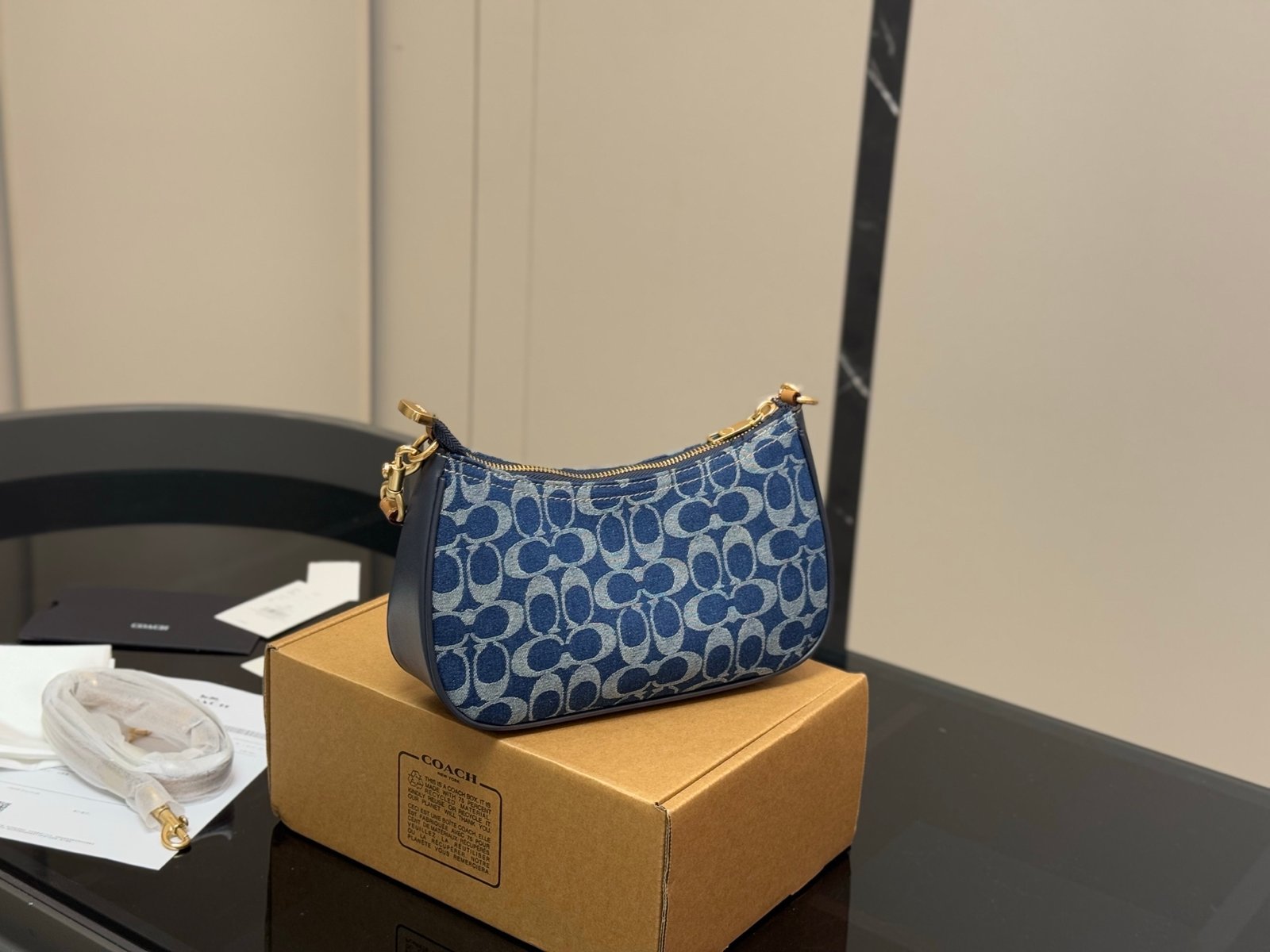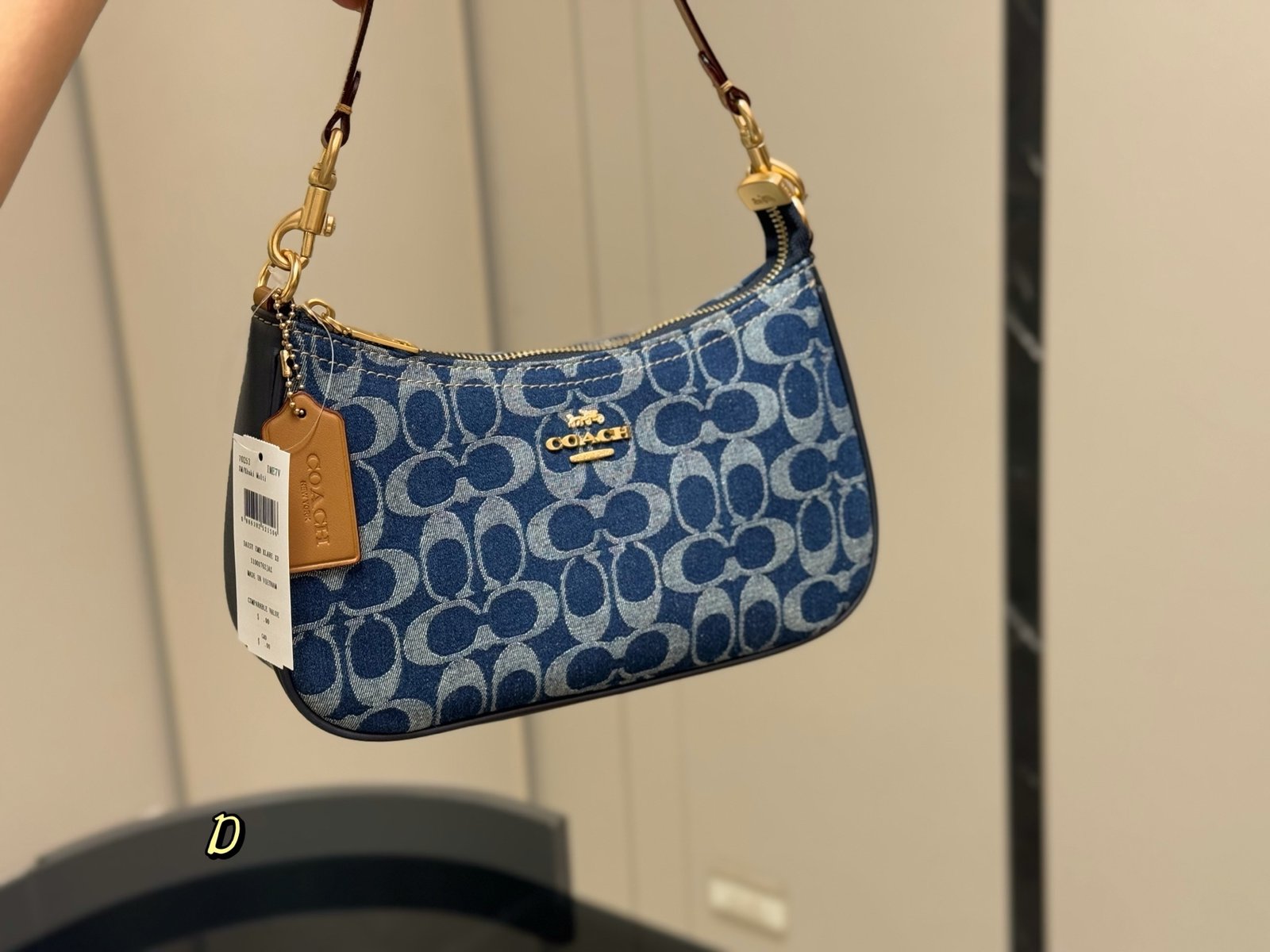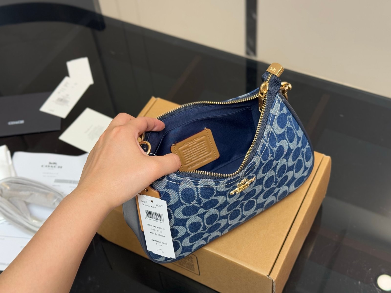 -Decorative Details: The bag features the brand’s signature brown leather hangtag emblazoned with the COACH logo. Metal zippers and gold hardware add a touch of sophistication.