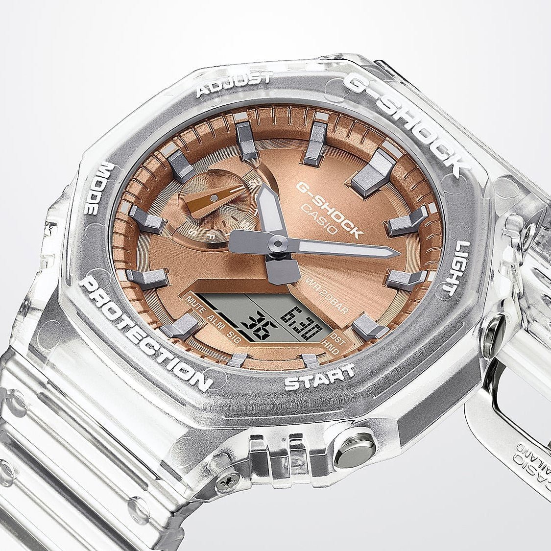 The shimmering color and cool translucence of the GA-2100BM. The GA-2100 with octagonal bezel is paired with a dial finished in metallic vapor deposition in popular color ?? silver ?? offset by a translucent band for a confidently cool look. These colourful watches make a great accessory for your street-savviest fashion.