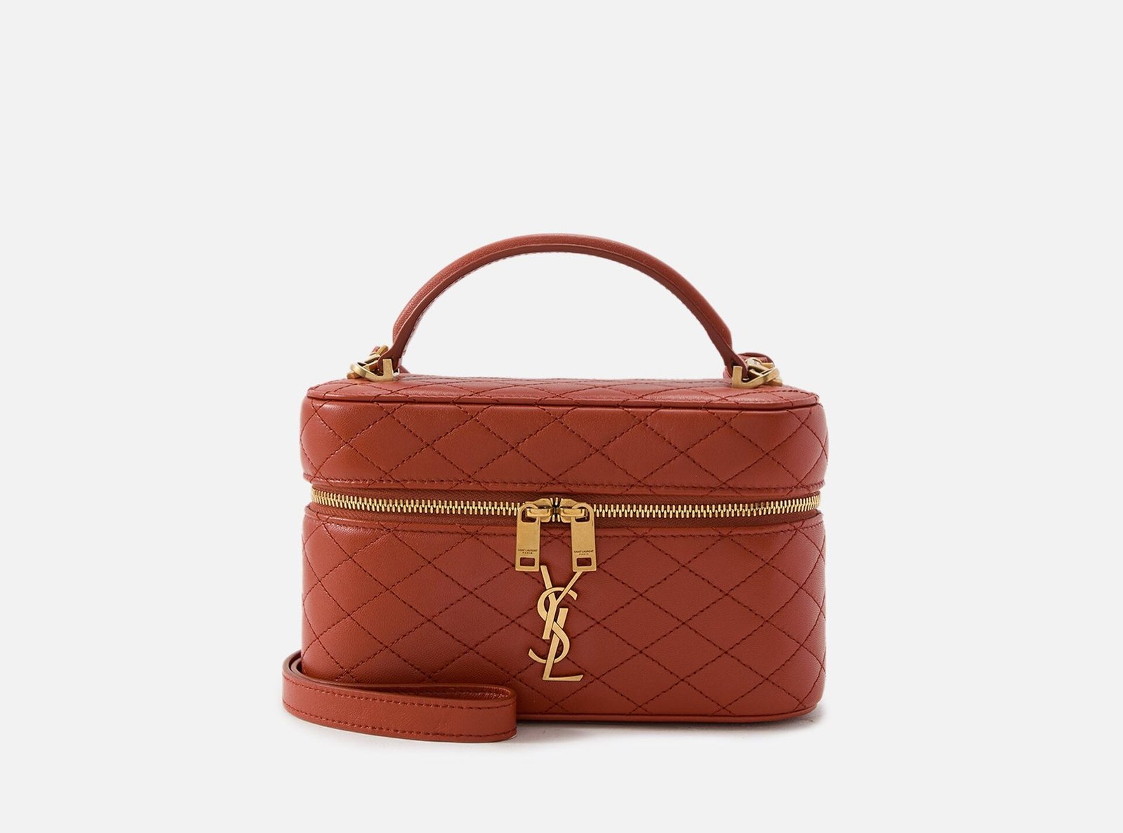 The Gaby Vanity Bag in Agneau offers luxurious lambskin texture with structured design. The vanity silhouette provides distinctive style with practical organization. Premium materials and expert craftsmanship ensure quality in this statement accessory.