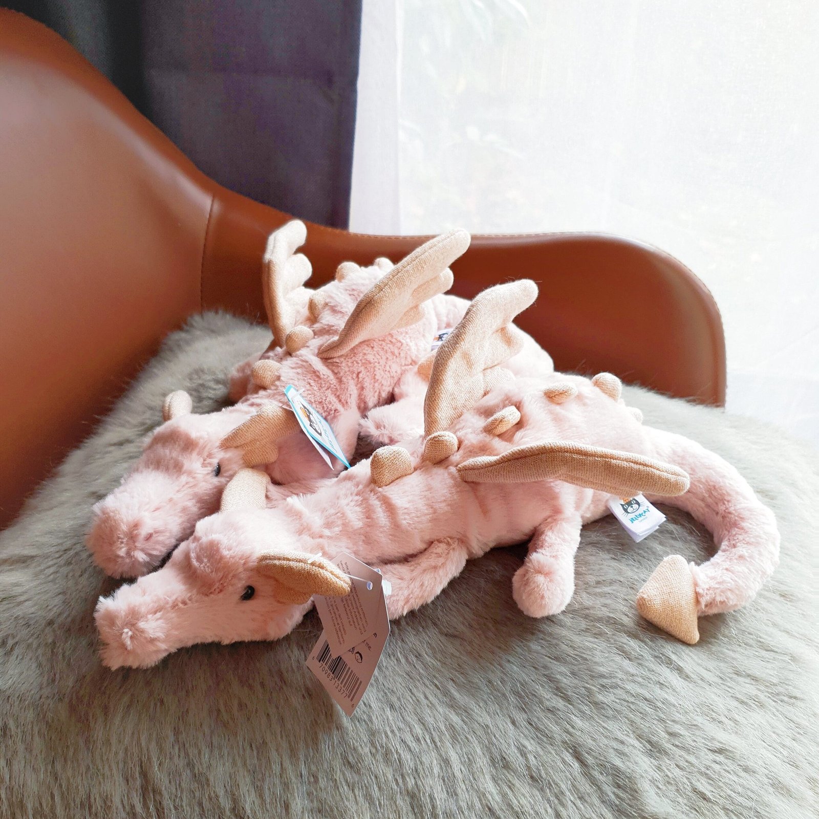 Fabulous flapper Rose Dragon is just so sleepy after zooming through the sky! This lollabaout legend has milkshake-pink fur and sparkling rose-gold wings. ears and spines! With chunky paws. a curvy tail and a very fine squishable snoot. this mythical matey will land in your heart.