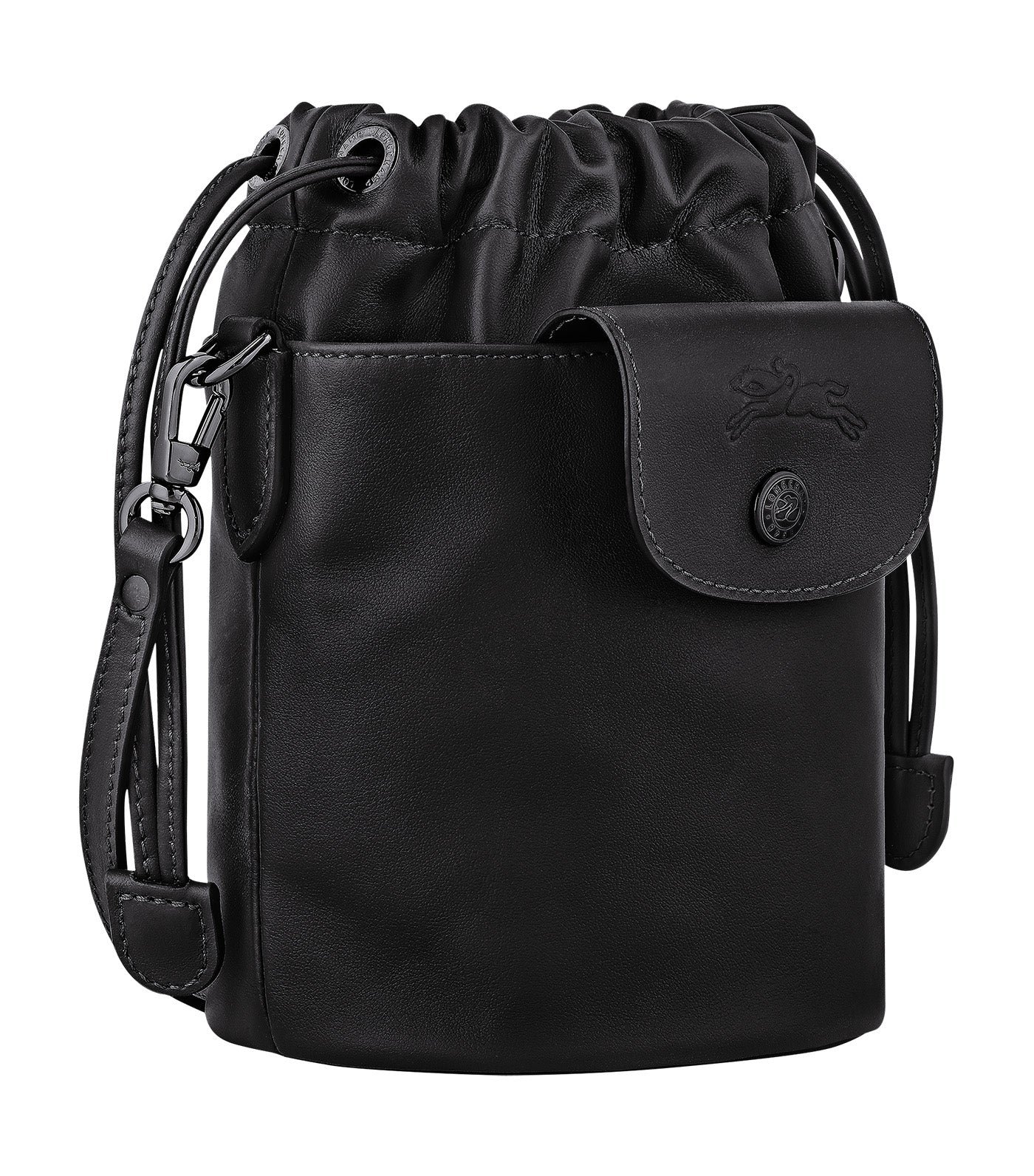 Longchamp Le Pliage Xtra is reimagined as a compact bucket bag made of cowhide leather. combining practicality and versatility. Thanks to its adjustable strap. it can be worn crossbody or over the shoulder. It also features a front pocket. perfect for slipping in cards or other accessories. Its drawstring closure ensures optimal security.