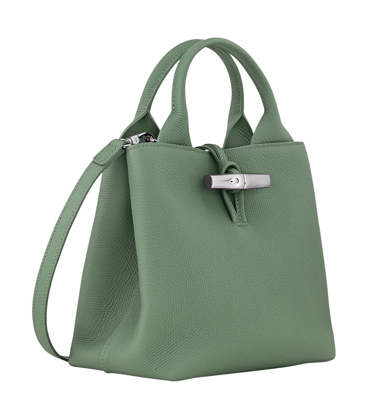 This grained cowhide leather Longchamp Le Roseau Handbag S exudes timeless elegance. Perfect for everyday use. it provides ample space for all your personal belongings. Its adjustable. removable shoulder strap offers versatility for crossbody. shoulder. or handheld wear. Like a sparkling gem. the Bamboo clasp adds a sparkling. feminine touch. The clean. graphic lines highlight the leather’s supple texture. which becomes more beautiful over time.