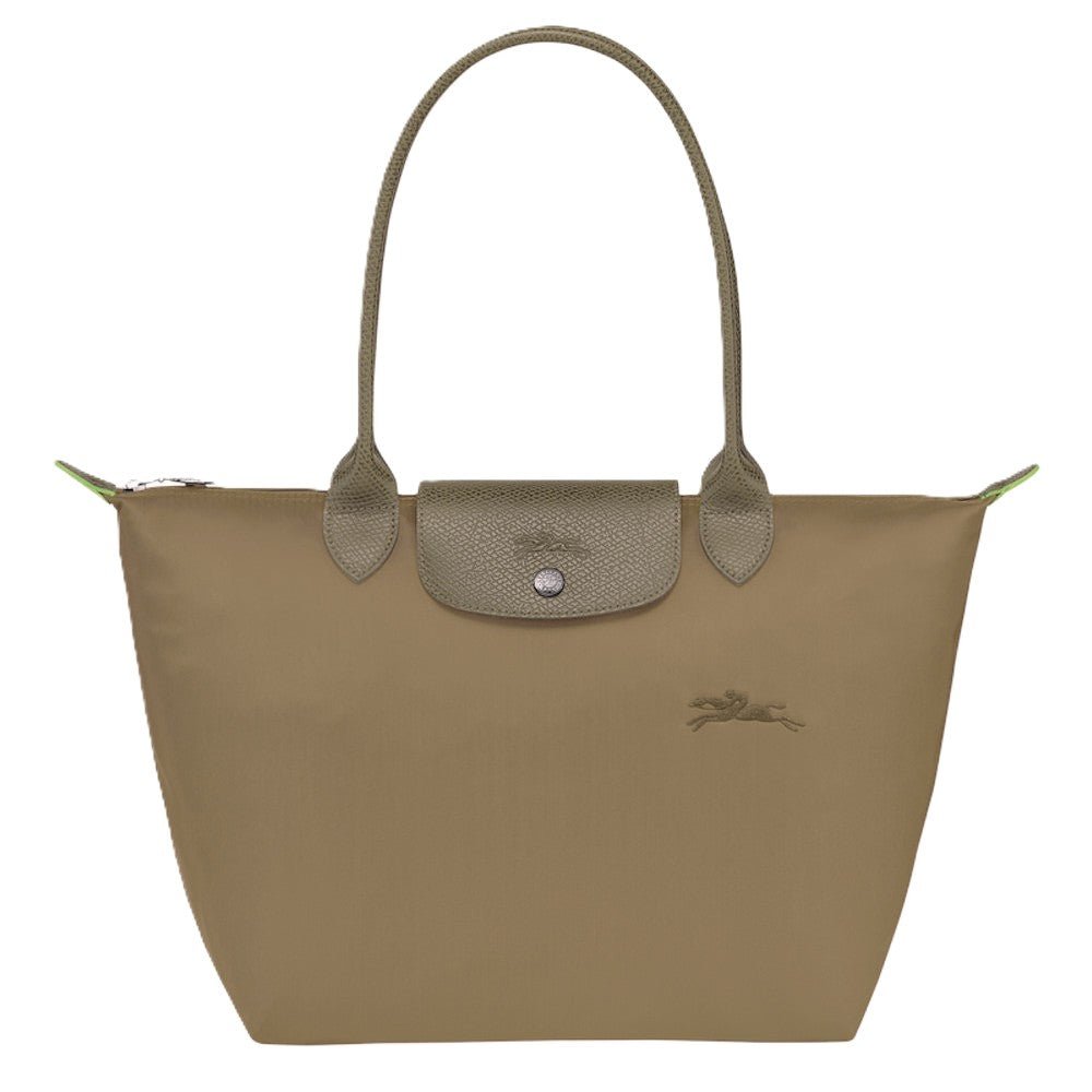 Perfect size for schoolbooks and economically friendly! The 1899 Longchamp Le Pliage Green is constructed from recycled canvas and features a long shoulder strap for easy carrying and combines nylon with matching color grained leather trim in classically cool colors. A necessary basic tote folds and unfolds for extra use. Zipper tops. One main compartment with one inside slip pocket.