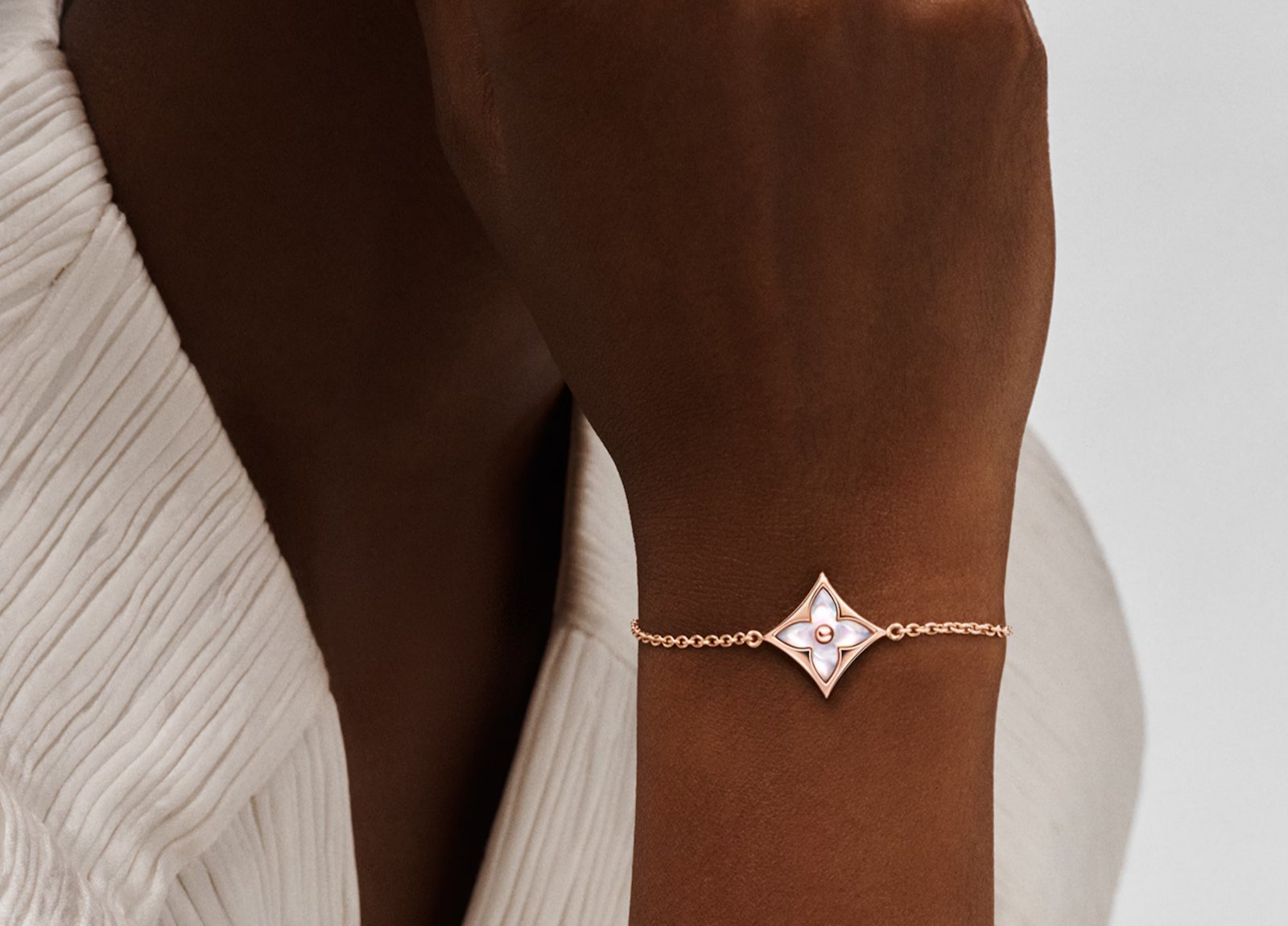 -Material Texture: The metal portion is crafted from rose gold, creating a warm and soft hue. The delicate texture of the mother-of-pearl jewel creates a soft, pearlescent sheen when refracted by light, creating an elegant contrast with the rose gold.
