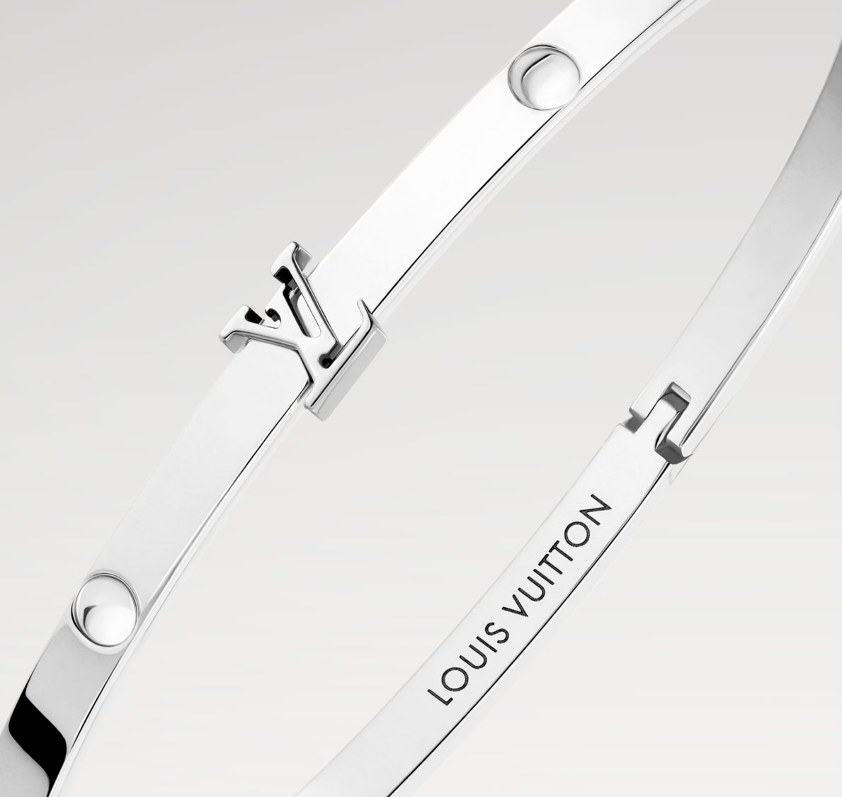 ‘-Brand Logo: The classic Louis Vuitton LV logo is prominently displayed in the center of the bracelet, creating a striking three-dimensional metallic texture that accurately conveys the brand’s core identity and is a direct expression of the brand’s DNA.