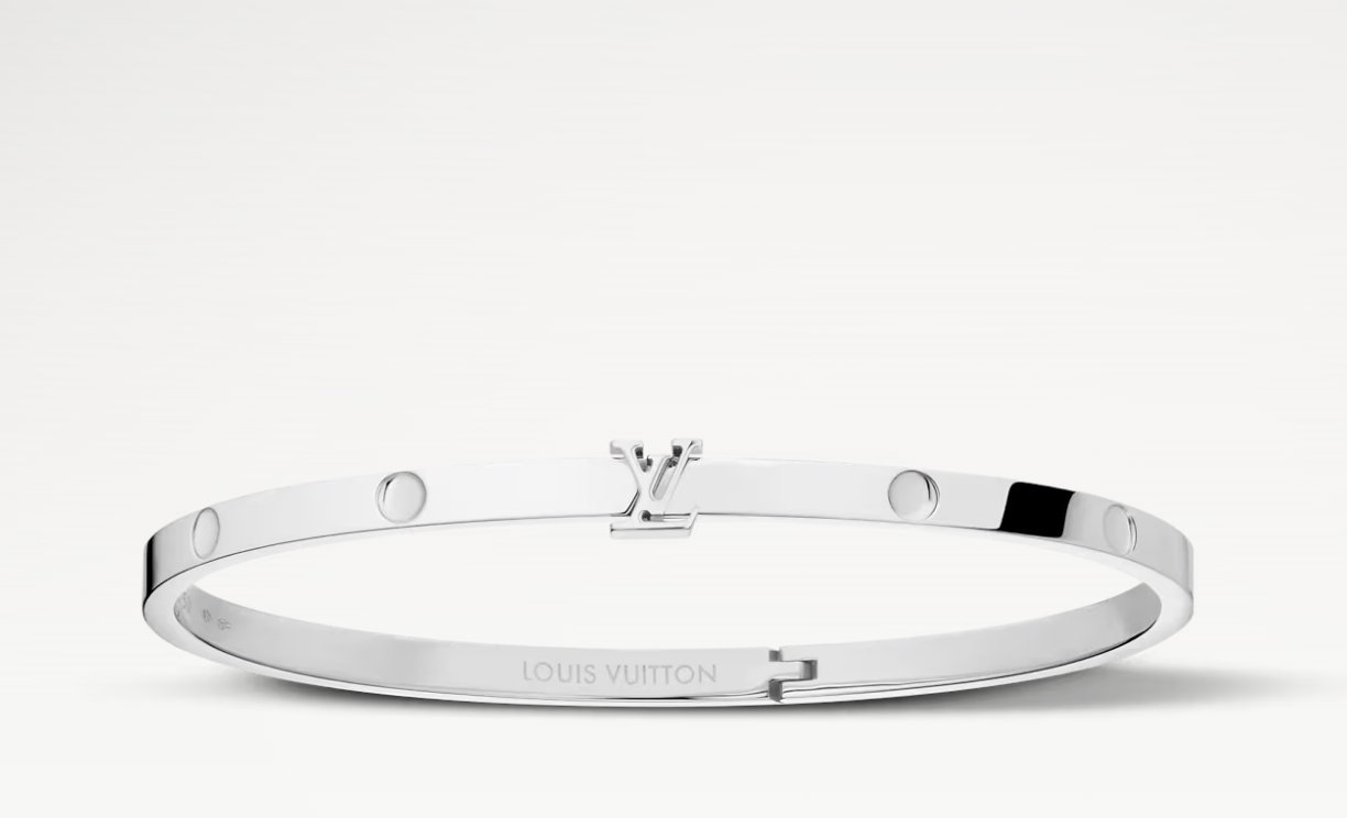 -Ingenious Design Details: Circular metal holes are distributed throughout the bracelet, creating a rhythmic juxtaposition with the LV logo. “LOUIS VUITTON” is clearly engraved on the inside, further reinforcing the brand’s signature.
