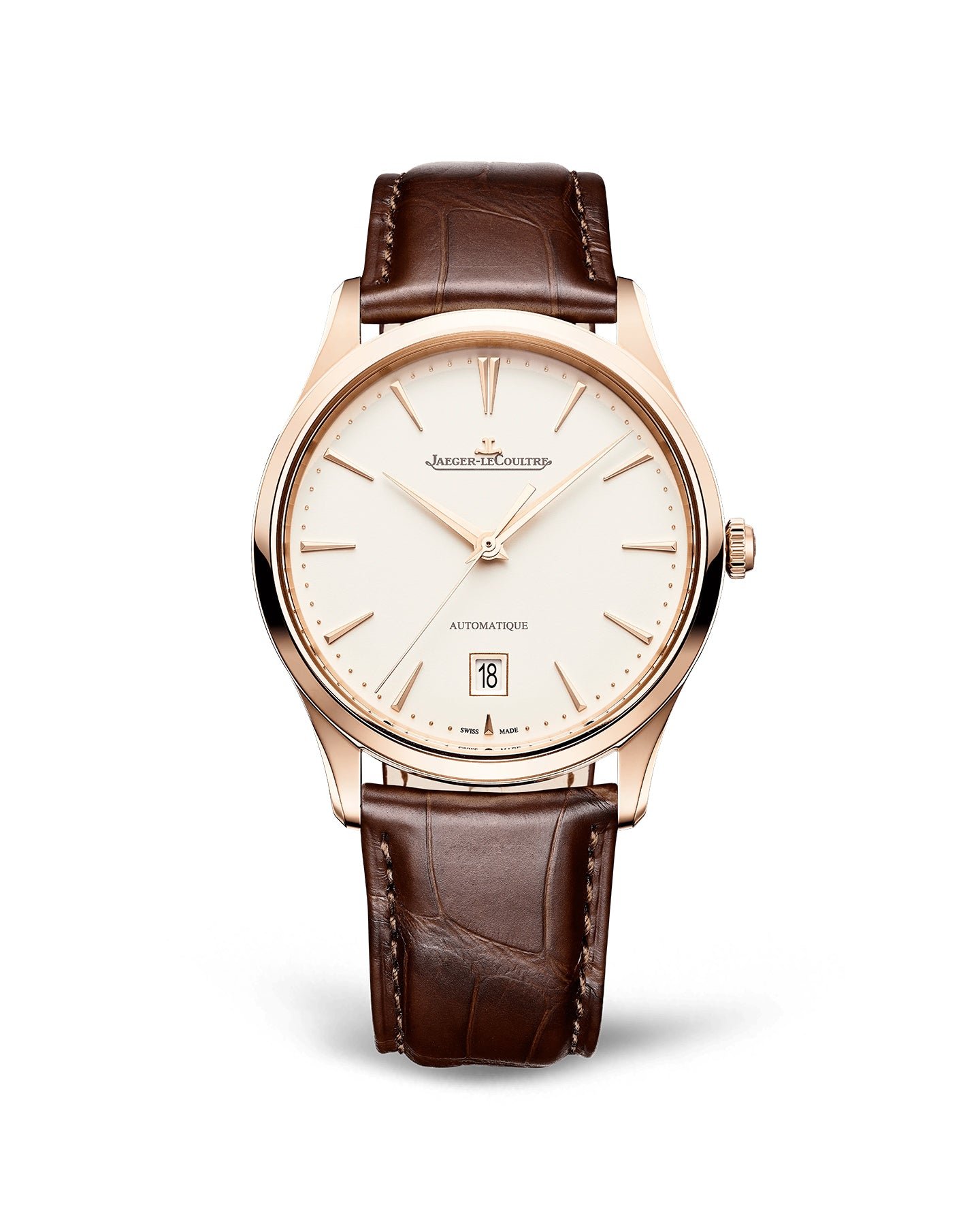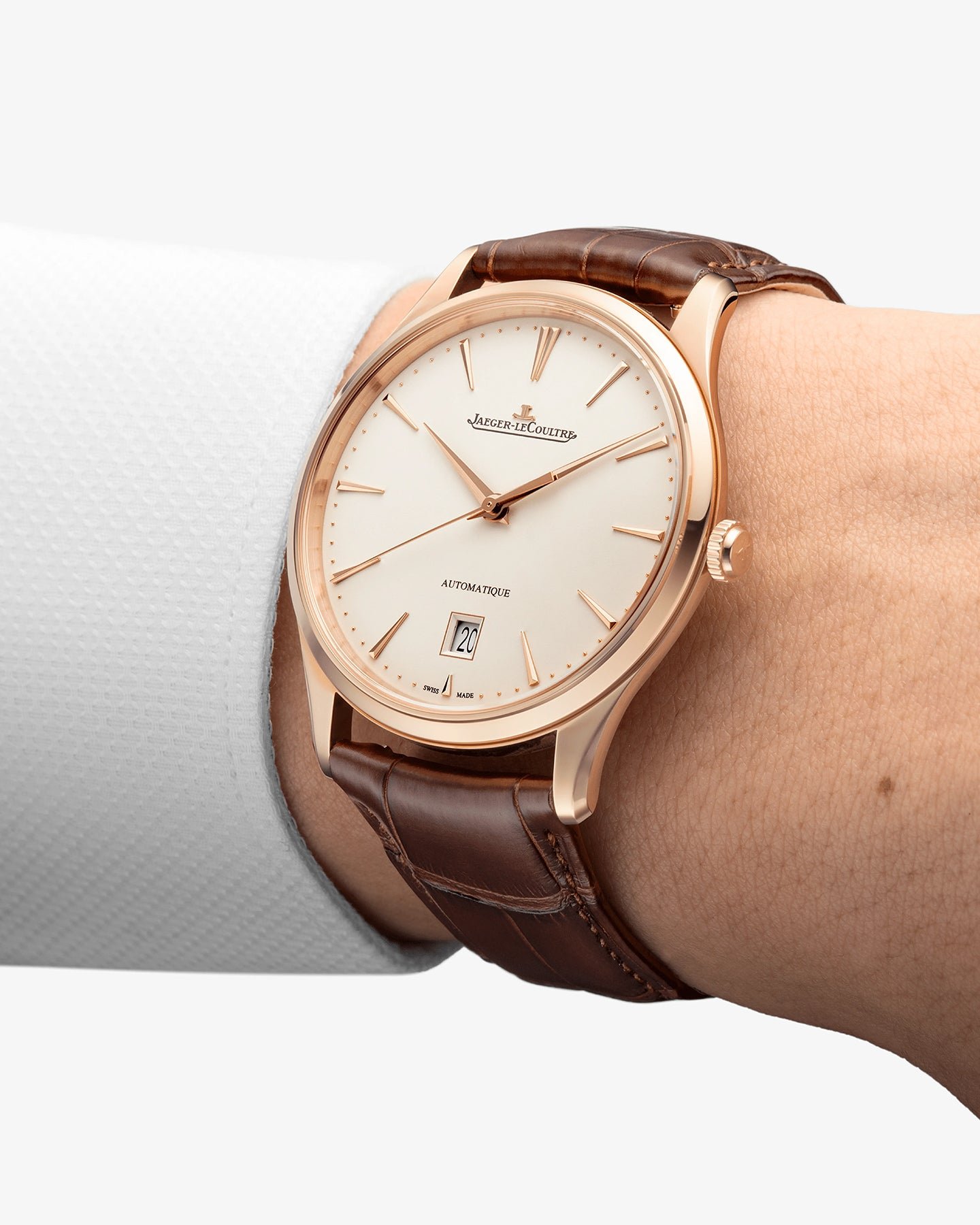 With its timeless yet modern style. the Master Ultra Thin Date watch in stainless steel features subtle changes made by the Jaeger-LeCoultre craftsmen in their constant pursuit of excellence. The first details to catch the eye can be found on its dial. On a sunrayed silver background. the hour-markers have been reworked with increased length and finesse. Like a signature. the date that gives its name to this timepiece is distinguished by its new aperture at 6 o’clock. A great classic for connoisseurs of refined and discreet objects.