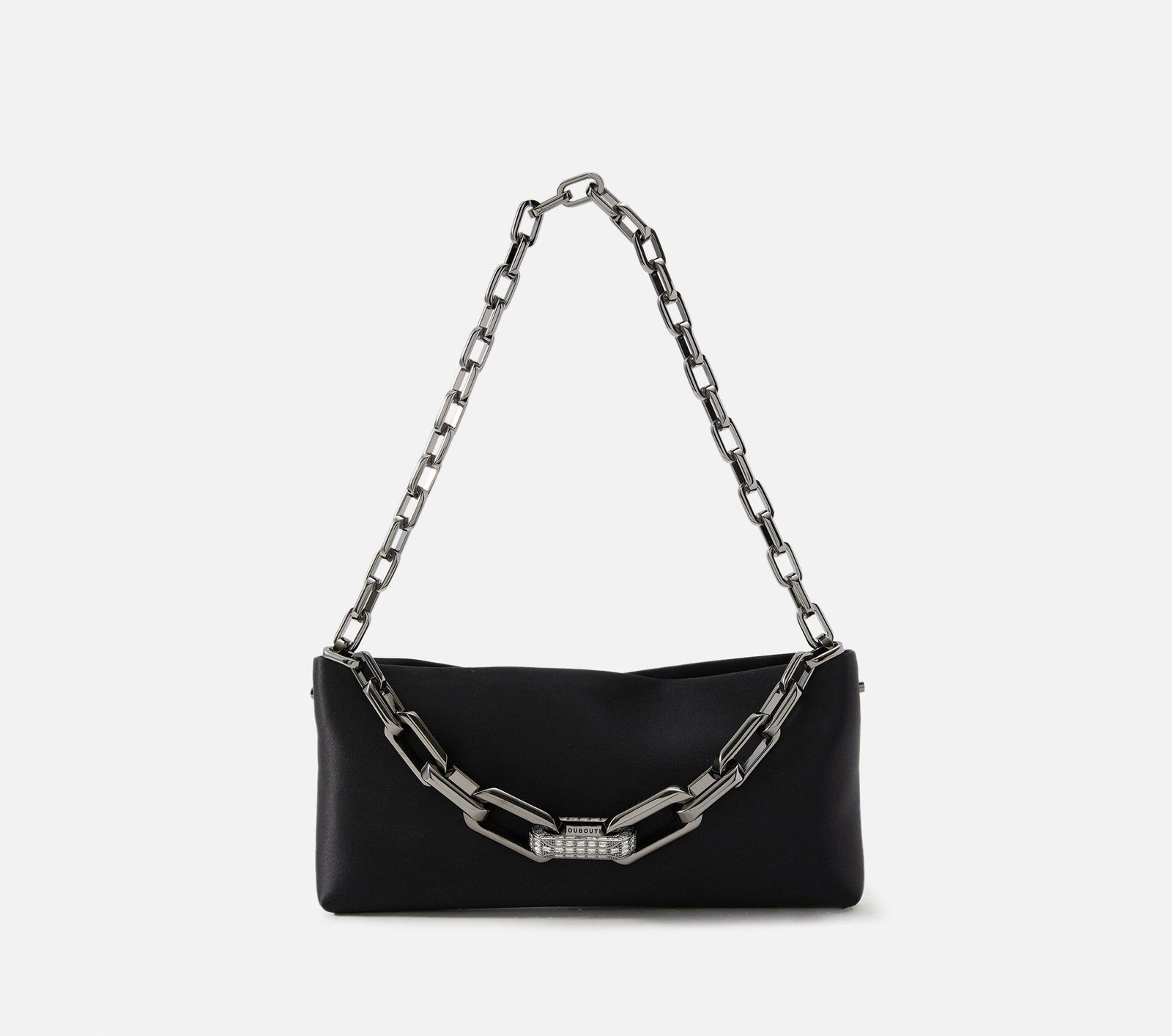 The Maykimay Chain Pouch in Satin combines luxurious texture with practical design. The gleaming satin fabric adds elegant sheen while the chain detail offers versatile carrying options. Perfect size for essentials with its compact yet functional dimensions.