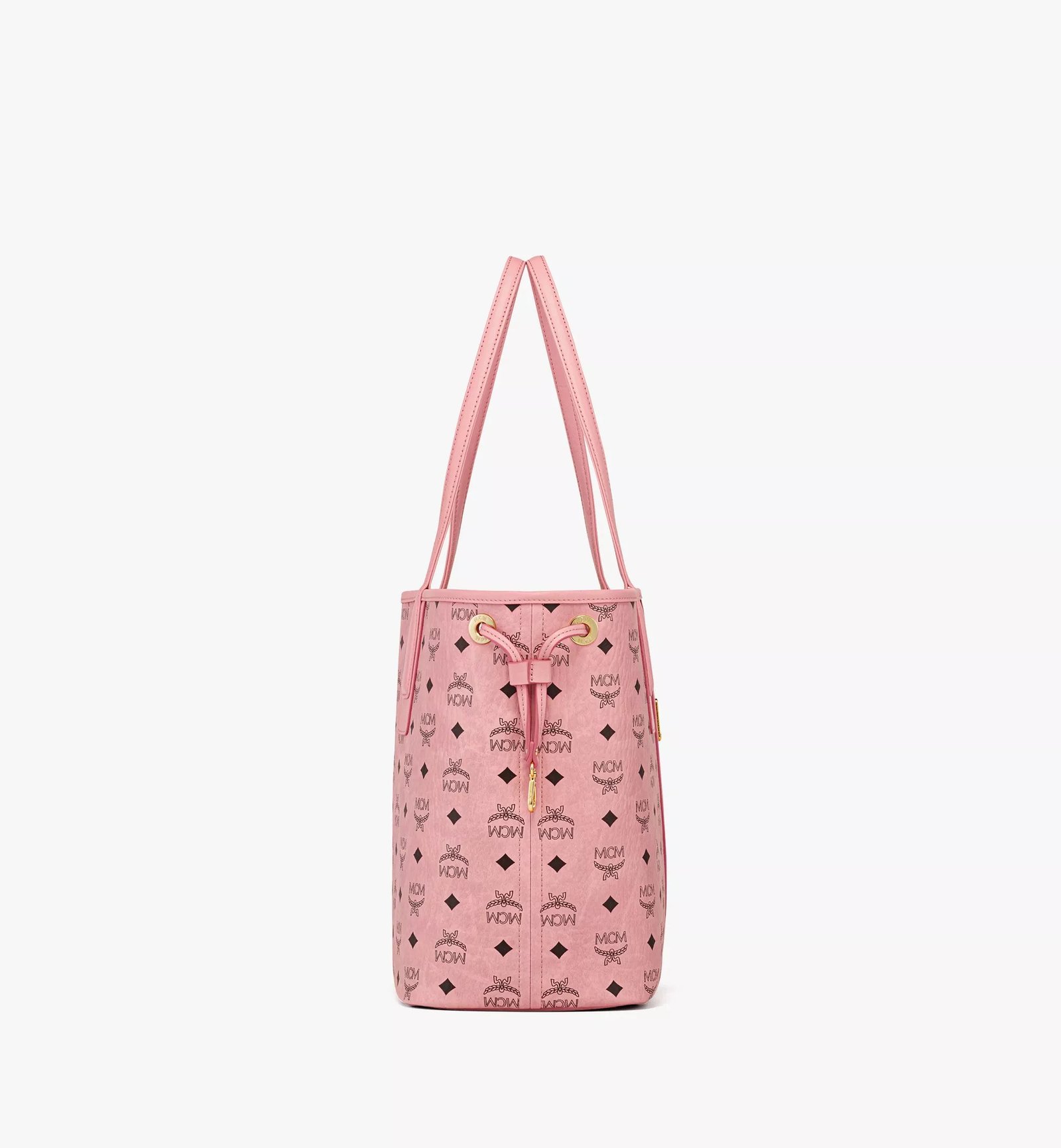 ‘-Monogram Design and Color: The bag features the signature MCM monogram and eagle monogram print all over. Set against a sweet pink background, the darker pattern evokes the brand’s classic logo while also creating a vibrant, youthful feel.