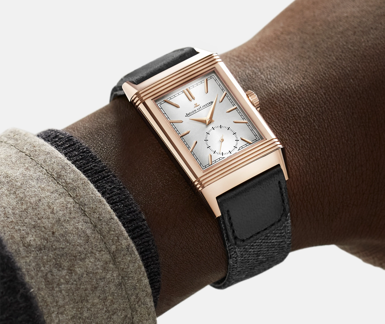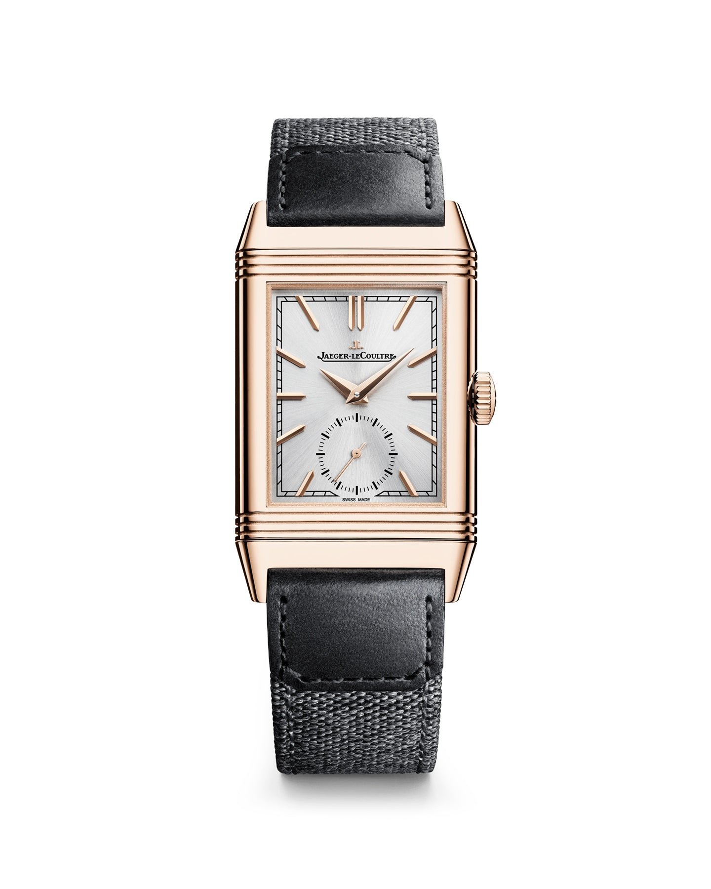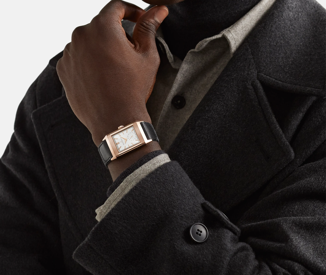 Equipped with Manufacture Calibre 822. each component of which is meticulously decorated. the Reverso Tribute Small Seconds elegantly marks the passing of time. Only 7.56 mm thick. its reversible pink gold case alone contains more than 50 components. a testament to its complexity and the hours put into its design. The silver colour of its sunray dial highlights the applied hour markers. the Dauphine hands and the small seconds hand.