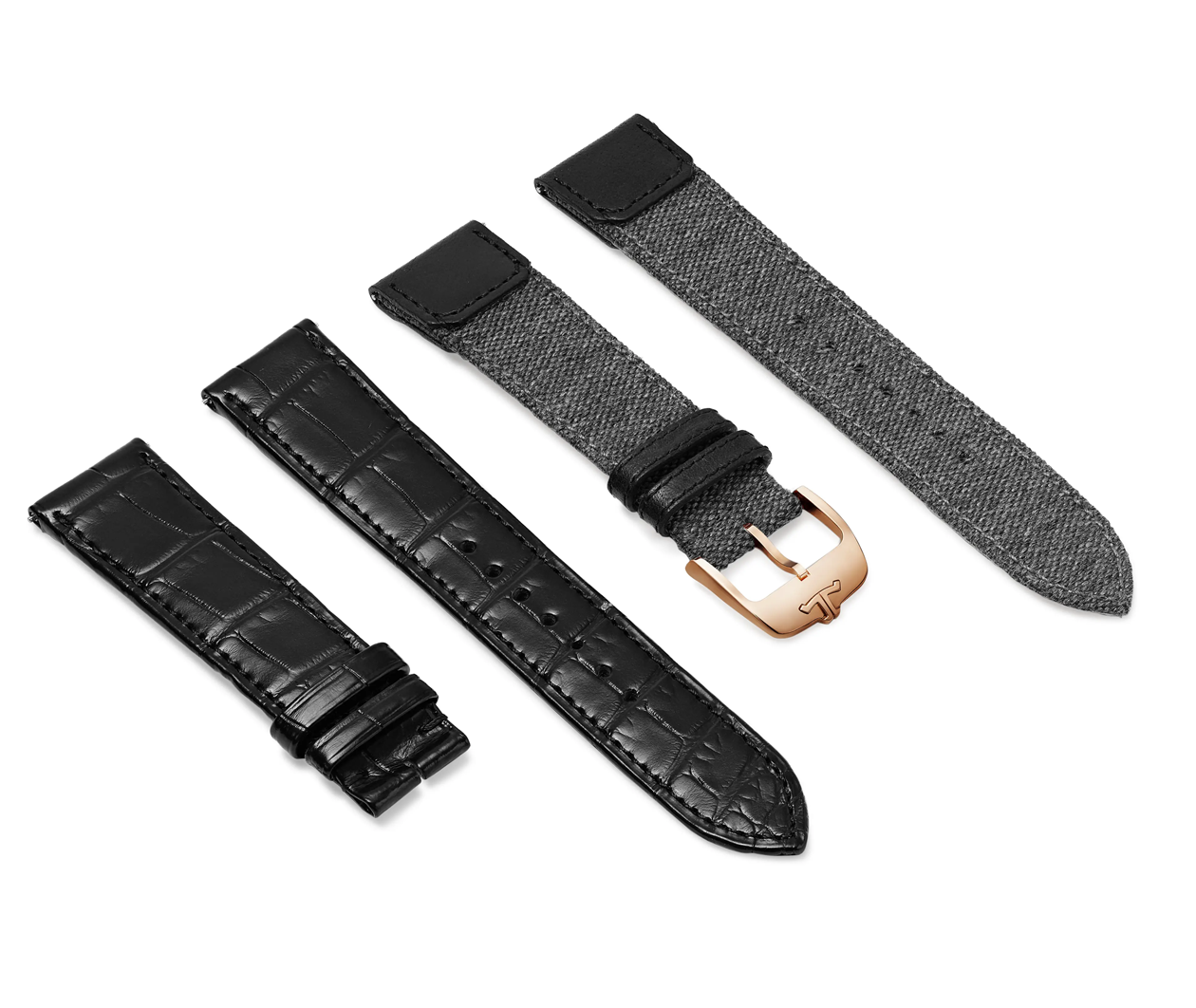 Incudes a pair of interchangeable straps – one bi-material (leather and canvas) in the Casa Fagliano design. the other in alligator leather.