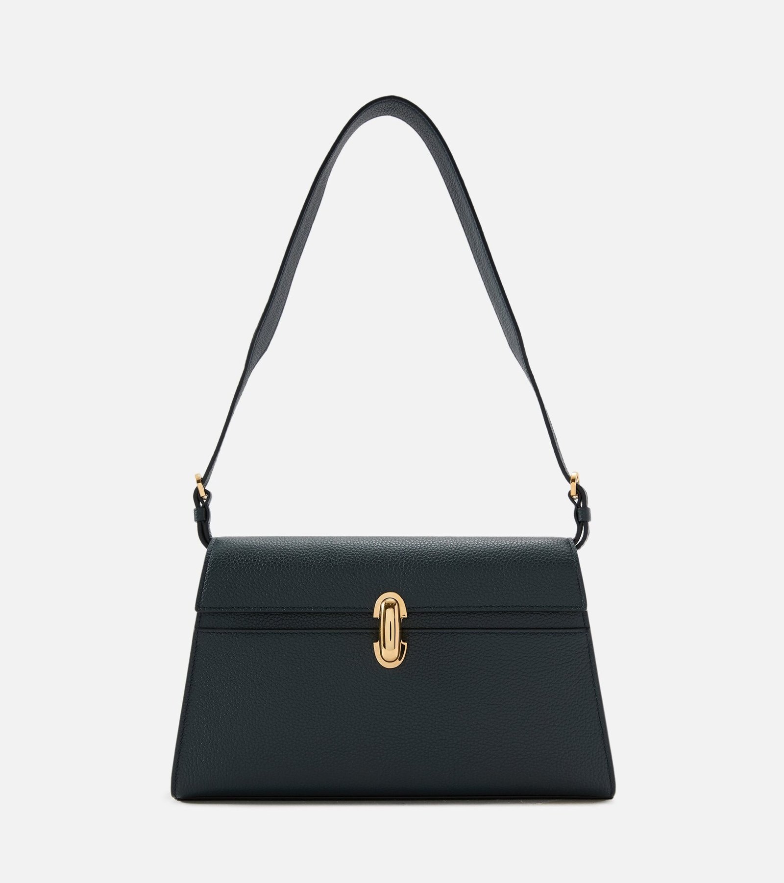 Savette’s signature Symmetry Bag is timelessly refined with its sloped hardware and harmonious parallel lines. crafted from luxurious calfskin.