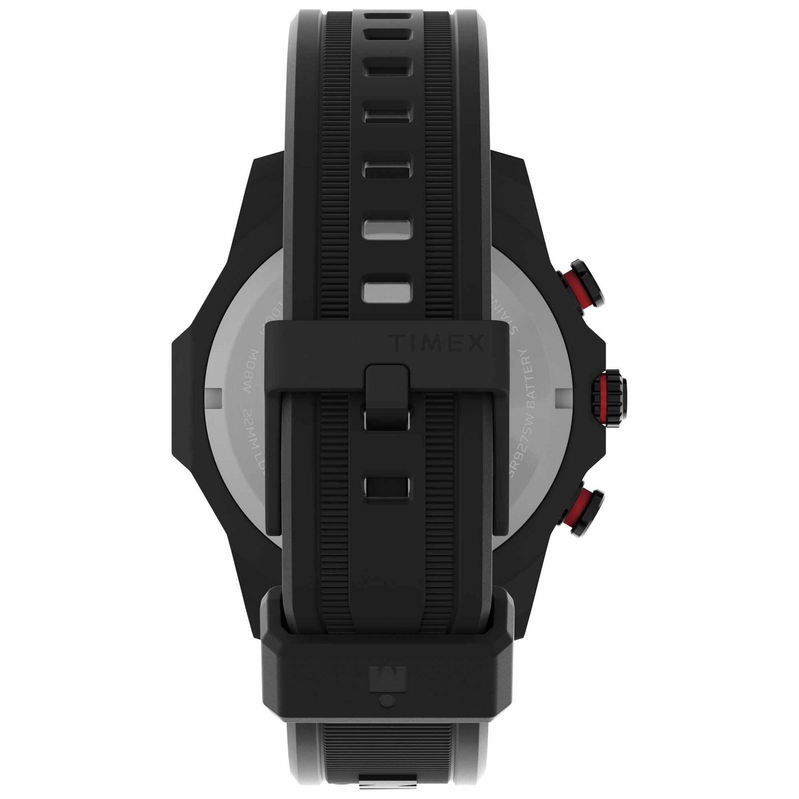 With its substantial 48mm stainless-steel case and cut-out detailing on its lugs. our TIMEX IRONMAN Adrenaline Chronograph brings bold style to our TIMEX IRONMAN line. It’s built with a chronograph movement for measuring elapsed time and recessed sub-dials that bring dimension to the dial. A date window between the 4 and 5-o’clock markers furthers the dial’s intricacy. while the iconic TIMEX IRONMAN logo appears on the dial. crown. and embossed rubber strap. Luminescent hands make it easy to tell time even in low-light conditions. while 100m of water resistance ensures that this watch can handle any weather.