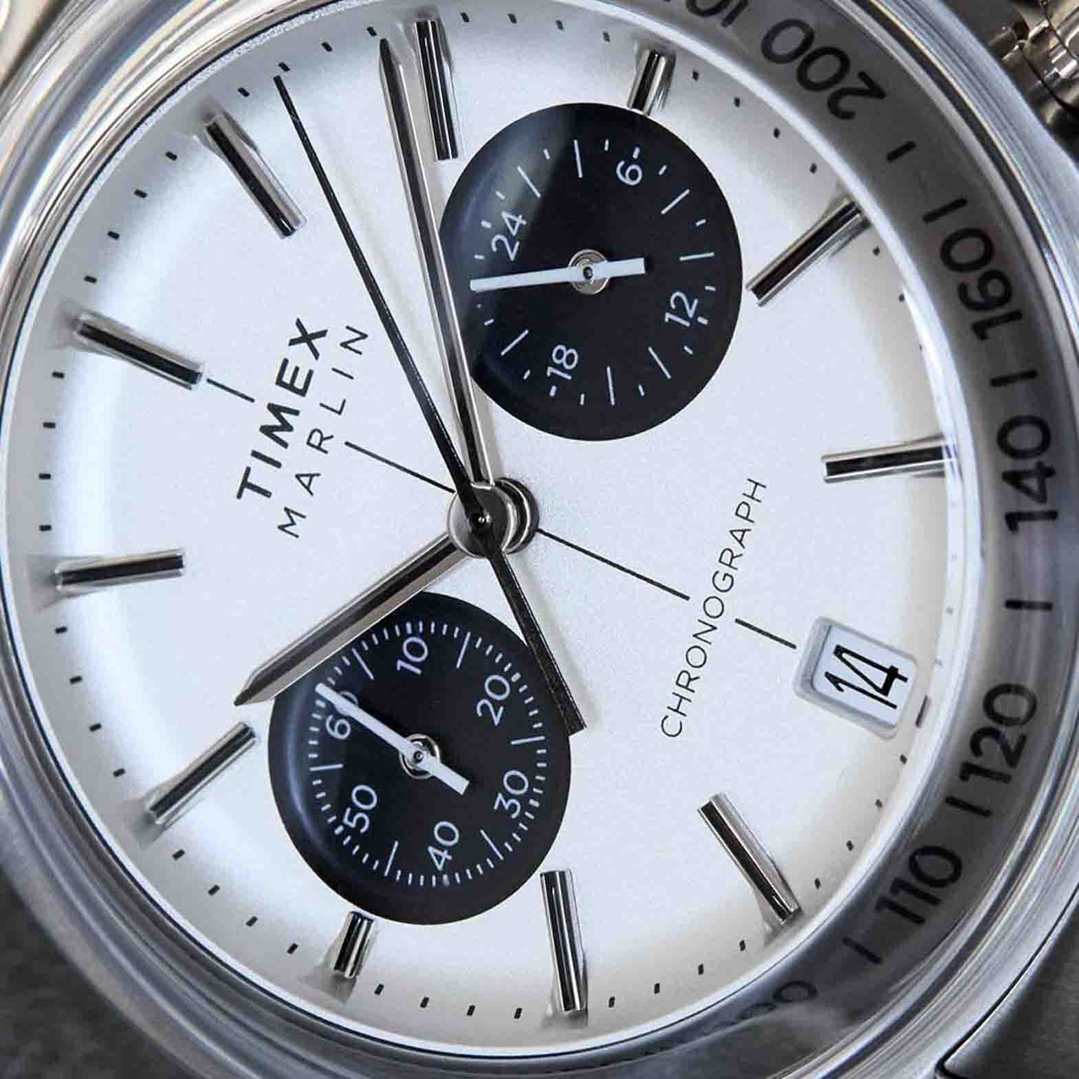 Our Marlin Jet Quartz Chronograph captures futuristic design ideals of the ’60s with understated details and a sleek 40mm brushed recycled stainless-steel case. However. its most defining feature is the domed crystal. Made from Hesalite??a refined form of acrylic favored for its clarity and ease of maintenance??the crystal covers the entire top surface of the watch case. enveloping the grooved bezel bearing a tachymeter index and bringing captivating depth to the watch’s retro-futuristic appearance. It blends seamlessly into the flat case sides. leaving only the lugs exposed.