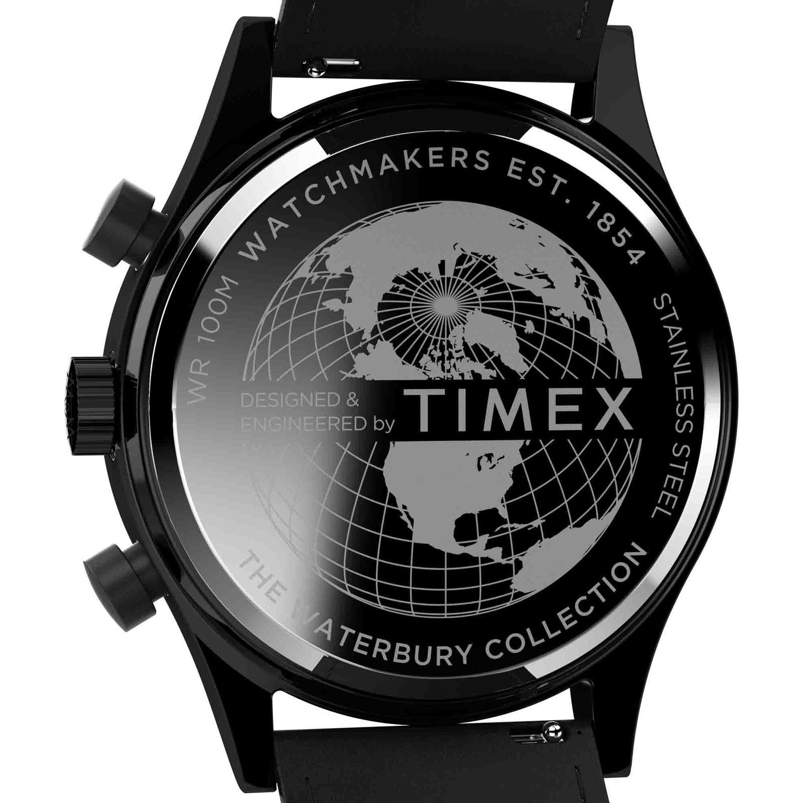 Built with the proprietary fly back chronograph movement designed in Pforzheim. Germany. the dial of the Waterbury Traditional Fly Back Chronograph houses fan-shaped sub-dials at the 4 o’clock and 10 o’clock positions with retrograde hands. A single press of the fly back pusher instantly resets the chronograph to display the current time in the current lap without the need to stop and reset. and when the chronograph isn’t in use. the upper sub-dial doubles as a second time zone indicator. This watch boasts a robust 43mm stainless-steel case paired with a cruelty-free vegan leather strap. Other notable details include a date window positioned at 2:30. luminous hour and minute hands for enhanced visibility. 100m of water resistance. and the iconic stylized W of the Waterbury Watch Company logo displayed on the crown. sweep second hand. and beside the 7th hour marker.