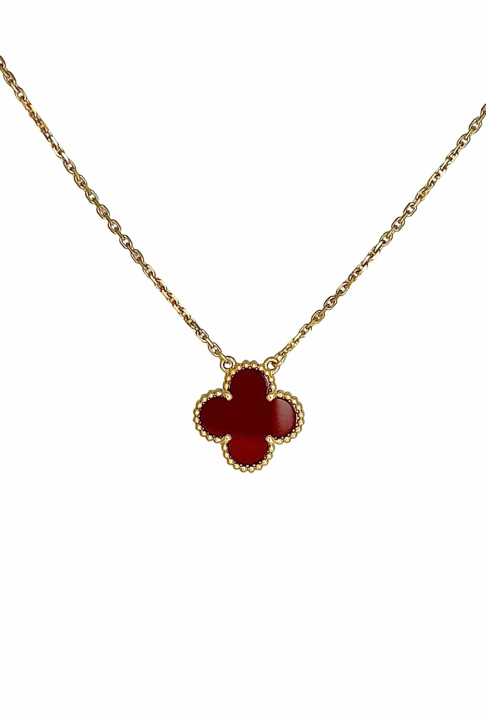 Alhambra Necklace branded Van Cleef and Arpels in 18 carat yellow gold and carnelian – Jewel second-hand but like new and available within 48 hours